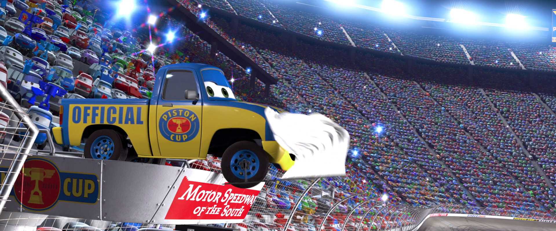In Cars 3, Kris Revstopski supersede his serves as a flag waver for the Piston Cup Racing Series.