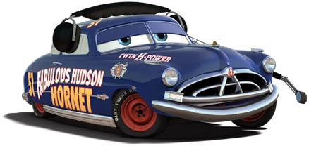 In the early days of the Piston Cup Racing Series, Doc, then known as the Fabulous Hudson Hornet, was a very popular dirt track racer. He was considered one of the best racers ever of all time, receiving the title, The Champion of All Time after achieving his third consecutive Piston Cup win. On the track, Doc befriended many of his competitors, such as Mario Andretti, Junior Moon, River Scott, and Louise Nash. In addition to being a talented race car, Doc was also good at making repairs to other cars, and once helped his friend Gus O'Line when he was having trouble with his semi-axis. Doc was also great friends with a mechanic named Smokey, who acted as a teacher to Doc. His friends called him "Hud" for short.