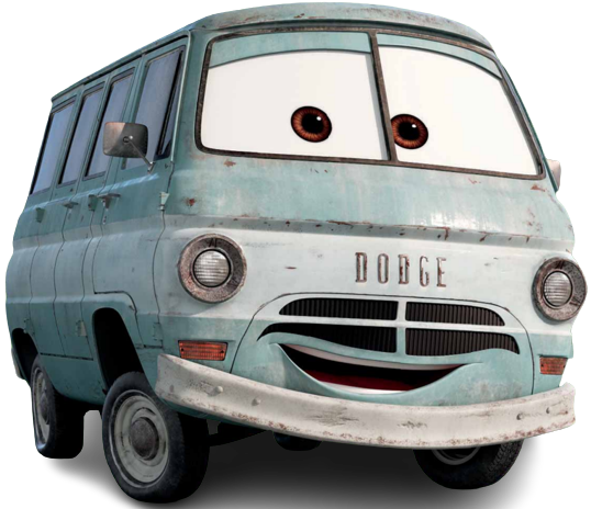Dusty Rust-eze is a rusted compact van that, together with his brother, Rusty Rust-eze, lived in his mother's garage in Boston, Massachusetts, United States. He and his brother loved telling jokes and helping other rusted cars. Because of that, they developed medicated bumper ointment around 1991. They started small company called Rust-eze, operating from their mother's garage, with their invention as a main product. It eventually grown into a household name with factories all over the country. Despite of company's success, they kept living in their mother's garage. Rusty and Dusty's mother stated that she was proud of her sons' successes but hoped their would eventually move out.