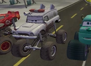 In Cars: The Videogame, he is a member of the monster truck gang, with Count Spatula and Ginormous. The gang challenges Lightning to a race, but Lightning doesn't have the right tires, so he goes to Luigi and Guido at Luigi's Casa Della Tires to get monster truck tires. His new tires made him and Ginormous scared, but Count Spatula said he needed the mental fortitude. Lightning proved them wrong in the race by winning it.